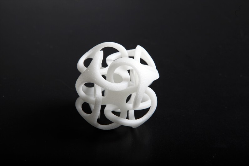 同じく名和晃平さんのデザインで、大変細やかで流れるような美しさが目を引く作品です。弊社は3Dプリント技術でで造形協力をさせていただきました。